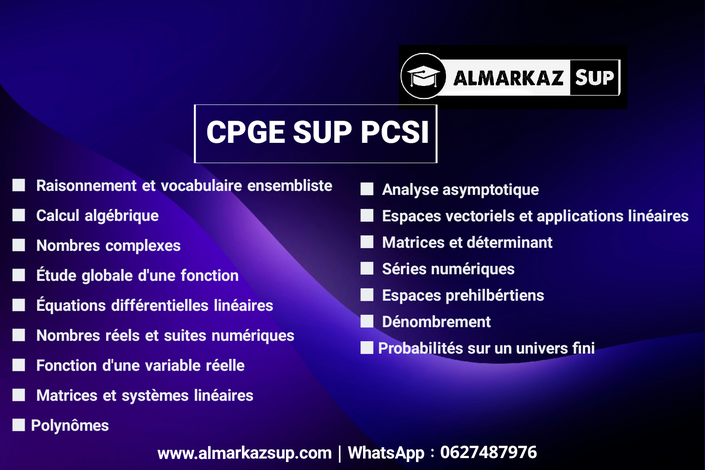 Cette formation fournit les cours de mathématiques de la 1ére année CPGE filière MPSI