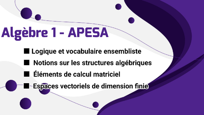 Cette formation comporte les cours d'algèbre fondamentale pour les filières scientifiques et techniques.