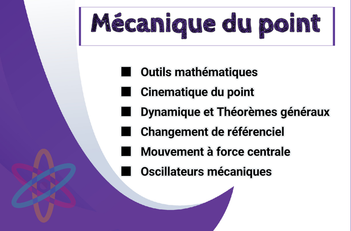 Cette formation comporte les chapitres de la mécanique du point matériel.